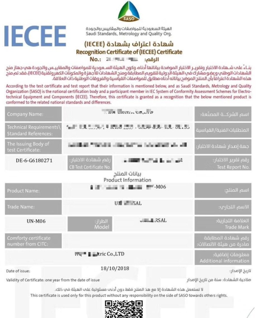 IECEE Certificate is an electronic registration process taken by the Saudi Arabian government before customs and export procedures in order to guarantee the quality and safety of electrical products (Fixed Lighting, Recessed Luminaire, Road and Street Lighting etc.) exported to the country by the Saudi Arabian Government.